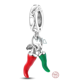 Sterling Silber 925 Chilischote - für Liebhaber der guten Küche, 2in1-Anhänger für Armband, Essen und Trinken