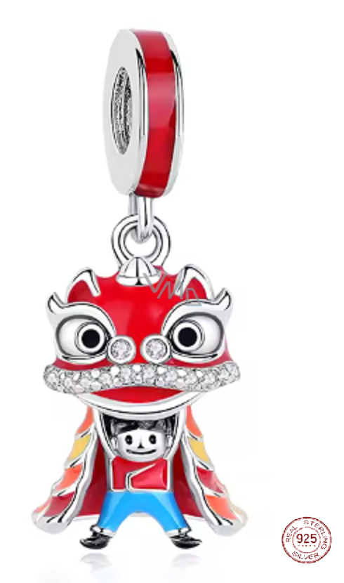Charm Sterlingové stříbro 925 Čínský dračí tanec, Dračí síla – Talisman odvahy a štěstí, přívěsek na náramek cestování