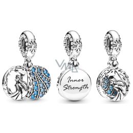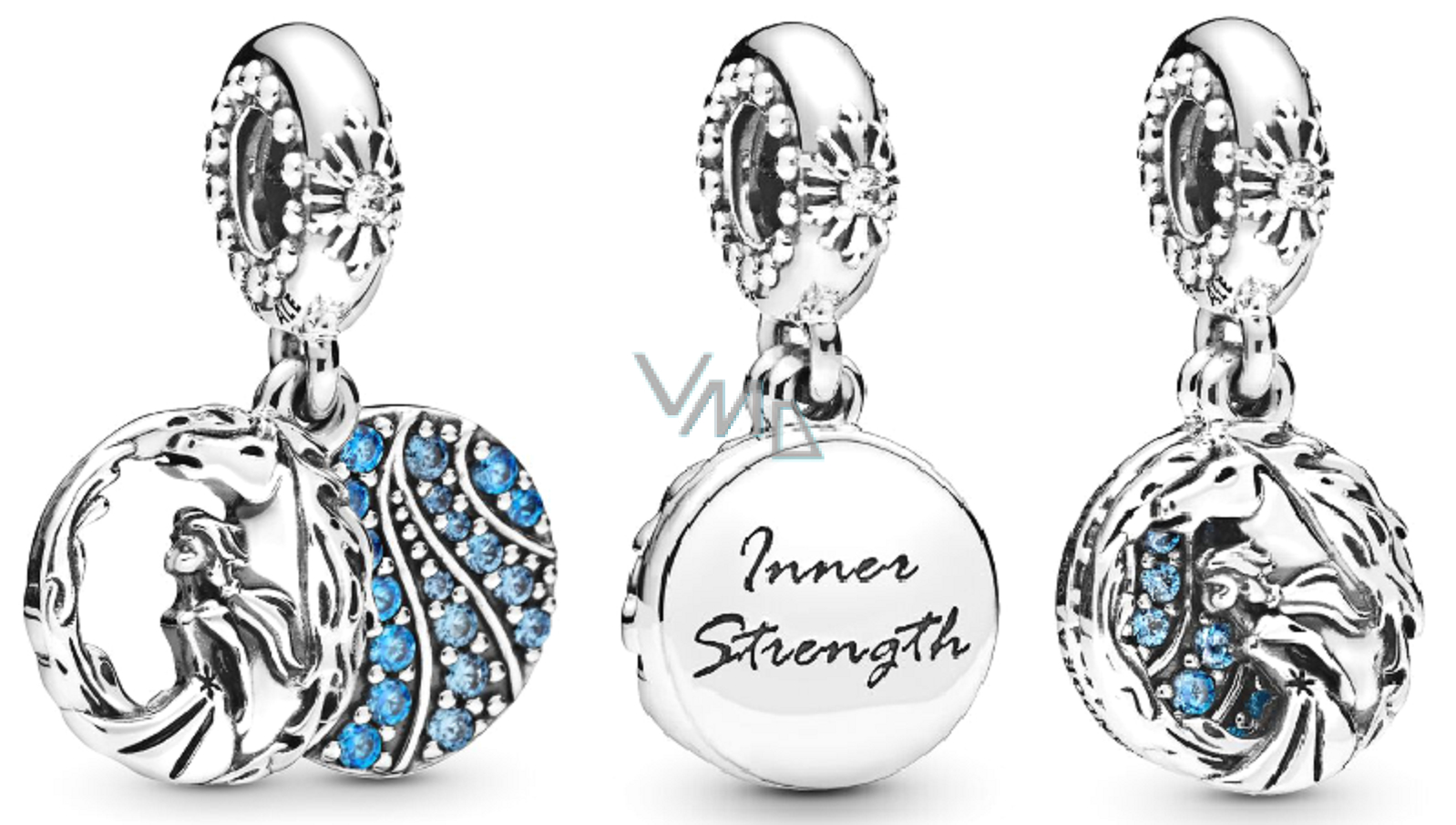 Tento oboustranný přívěsek ze stříbra 925 obsahuje kreslenou postavičku Elsu z Disneyho filmu "Frozen 2". Pomůže vám vzpomenout si na nejdůležitější vztah ve vašem životě. Toto kouzlo inspirované pohádkami s vyrytým inspirativním slovem „Vnitřní síla“ je osazeno kubickými Zirkony v modré barvě s vlnitým vzorem, který dává nositeli sílu. Spojte odvahu a víru se svým vzhledem a stylem se svým oblíbeným kouzlem, abyste si připomněli, že se nikdy nevzdáte.