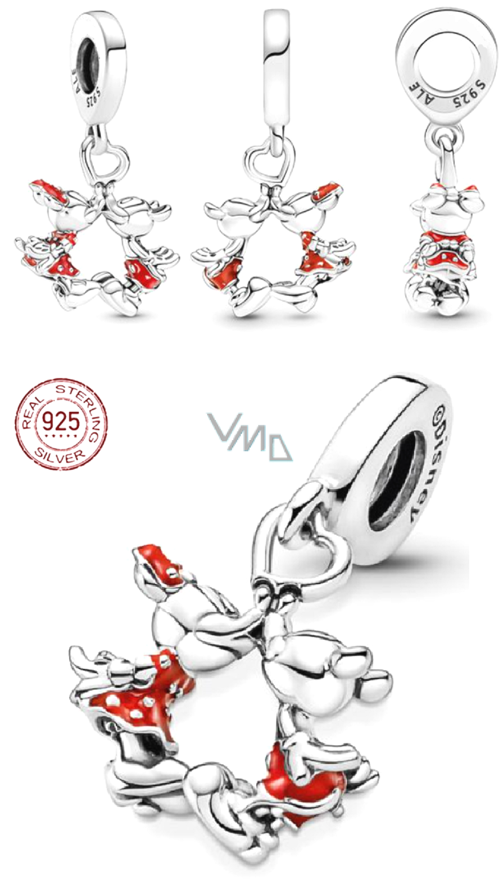 Charms Sterling Silber 925 Disney Minnie Mouse & Mickey Mouse küssend, Armband Anhänger
