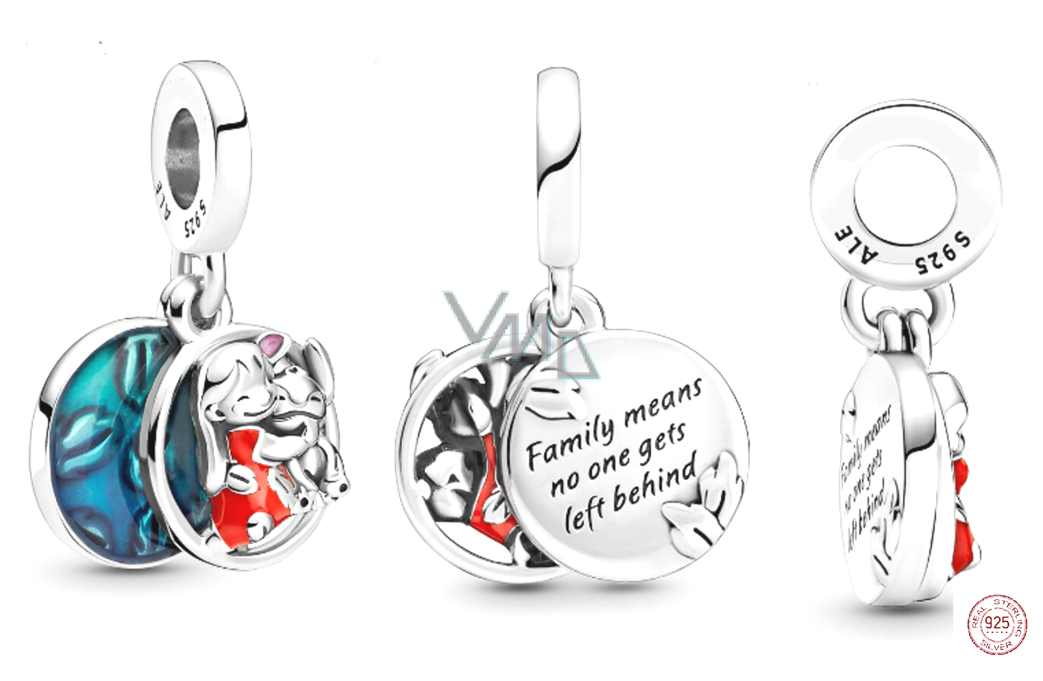 Sterling Silber 925 Disney Lilo & Stitch - Familie bedeutet, dass niemand zurückgelassen wird, 2in1 Familienarmband-Anhänger