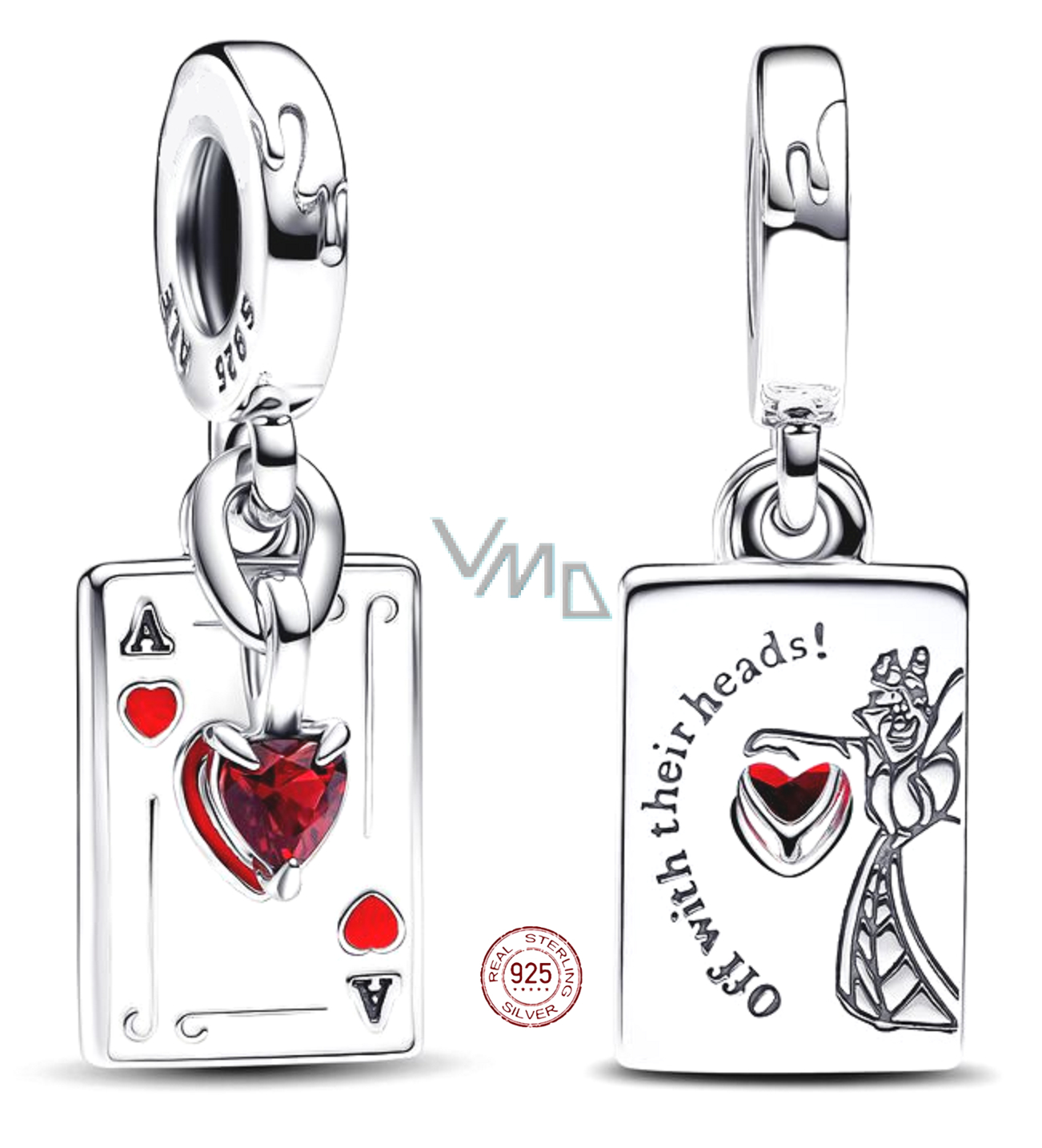 Charm Sterling Silber 925 Disney Alice im Wunderland 2-in-1 Herzkönigin, Anhänger für Märchenarmband