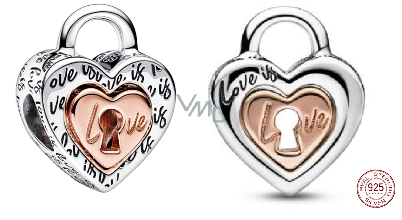 Sdílejte lásku s dvoubarevným rozdělitelným přívěskem Srdce s visacím zámkem. Ručně dokončovaný přívěsek ze stříbra s opakovaně vyrytým textem „Love is love“ - Láska je láska obsahuje vyjímatelné vnitřní srdíčko pozlacené 14karátovým růžovým zlatem s klíčovou dírkou tvořící písmeno „o" vyrytého nápisu „Love“ - Láska. Noste přívěsky samostatně, odděleně nebo se podělte s někým výjimečným.