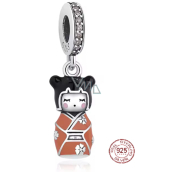 Stříbrný přívěsek 925 – Japonská panenka Kokeshi v hnědo-oranžovém kimonu