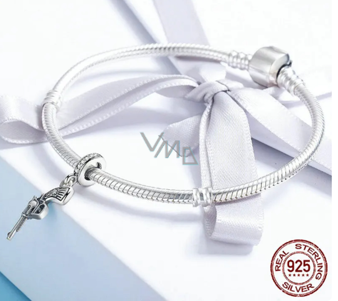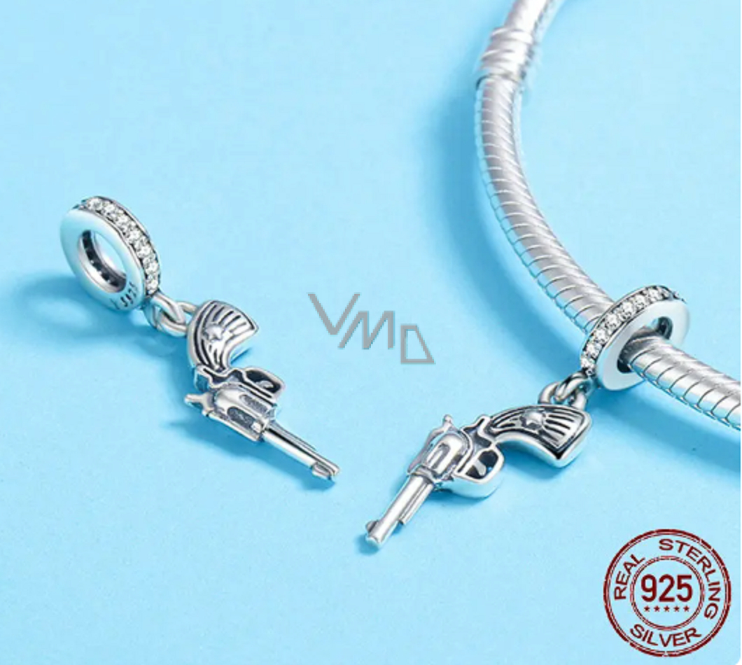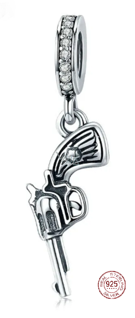 Staňte se pistolníkem jako z westernu díky přívěsku s koltem. Buďte ostřílení s naším přívěskem ze sterlingového stříbra! Doplňte si svůj náramek o další pěkný kousek nebo obdarujte své blízké a staňte se "neprůstřelným".