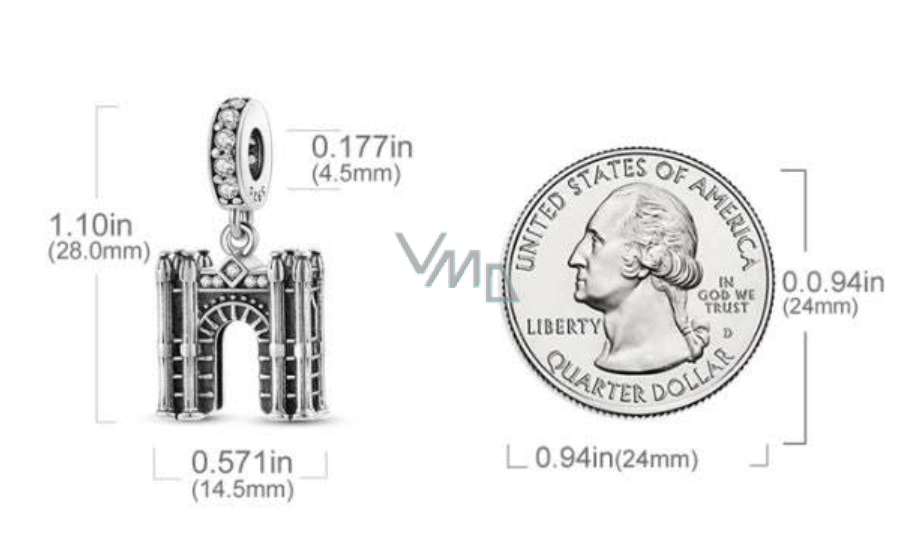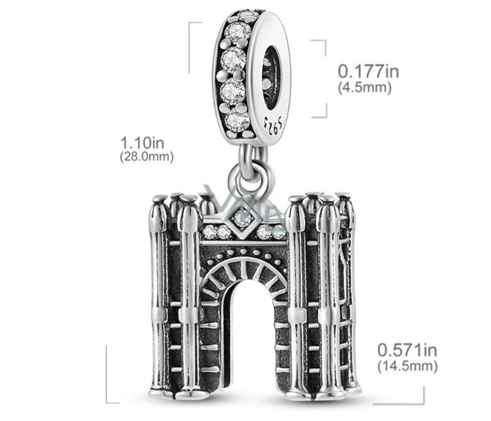 Přemýšlíte, co si přivezete z výletu z Paříže? Kupte si tento stříbrný přívěsek na náramek s motivem Vítězného oblouku a vzpomeňte si na tento výlet, kdykoliv se podíváte na svůj náramek.