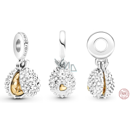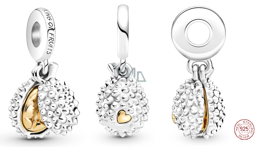 Tento přívěsek se skládá ze dvou polovin ovoce durian. Žlutá dužina je dokonale zobrazena zlatou barvou, zatímco Textura s korálky ze stříbra 925 na vnější straně ilustruje špičatou kůži. Na okouzlujícím prstenu je vyryta přezdívka ovoce 'KING OF FRUITS'. Dokažte, že máte skvělý vkus s Durian Fruit Dangle Charm. Tento dvojitý závěsný přívěsek, ručně vyrobený ze sterlingového stříbra a pozlacené zlatem, obsahuje rytinu „Král ovoce“, inspirovanou přezdívkou pro durian v jihovýchodní Asii. Texturovaný vnější povrch obsahuje malé srdce pozlacené zlatem. Pro hravý vzhled.