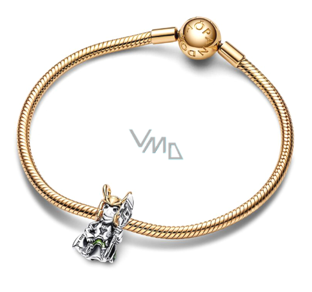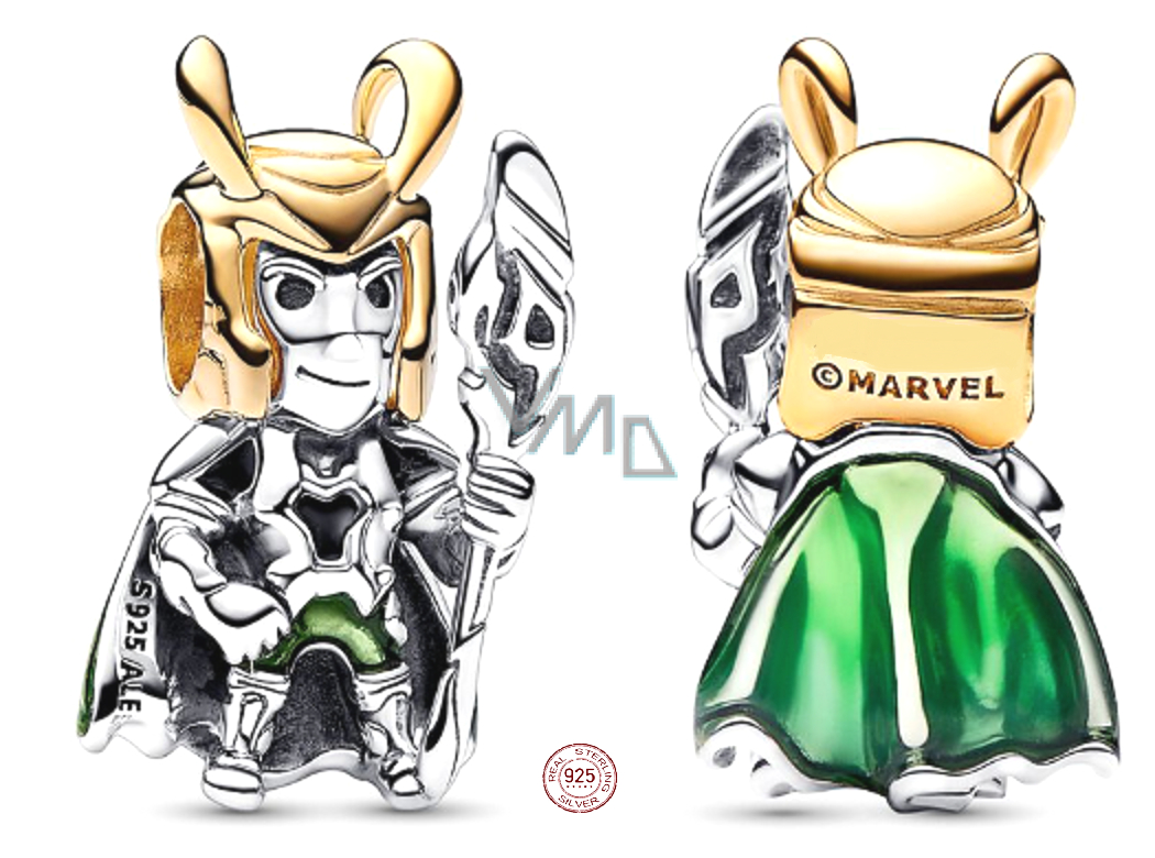 Dodejte svému náramku nádech hravosti s MARVEL Loki Charm. Pokud je Loki vaší oblíbenou postavou, máte štěstí! Na stříbrném přívěsku je vyobrazen Bůh škodolibosti ve své ikonické uniformě a realistické detaily obličeje a také rohatá helma 14kt. pozlacená kovová slitina. Nosí také vysoce detailní leštěné brnění a drží žezlo a také světle zelený plášť v ručně malovaném smaltu. Řekněte ano dobrodružství tím, že si ho přidáte do své sbírky, nebo darujte Lokiho fanouškovi Marvelu svého života.