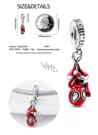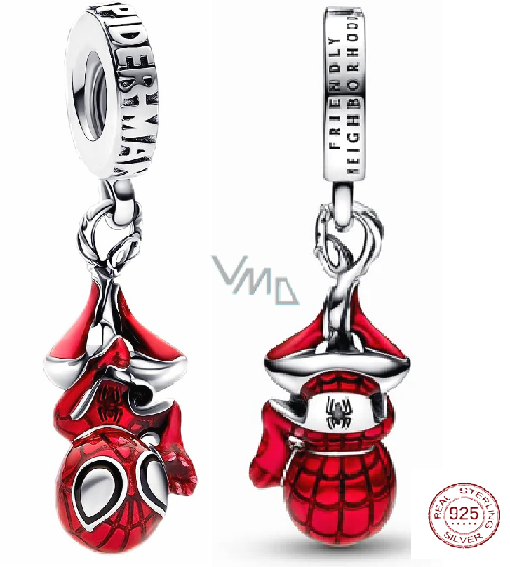 Řekl někdo Spider-Man? Přívěsek, který obsahuje Spider-Mana v jeho ikonickém hrdinovi, je vyrobeno ze sterlingového stříbra a zdoben přesnými detaily smaltu, aby vytvořil charakteristický Spidey oblek. Jsou na něm vyryta slova „friendly neighbourhood“ přátelské sousedství a s textem „SPIDER-MAN“ , zatímco na opasku Spider-Mana je na zadní straně motiv pavouka.