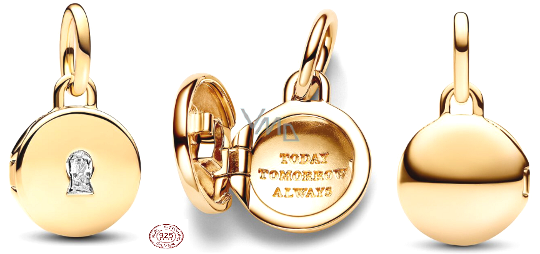Mějte to, co je vám nejdražší, blízko k vašemu srdci s otevíratelným a gravírovatelným přívěskem. Tento přívěsek ze sterlingového stříbra má na přední straně čirý kámen kubické zirkonie ve tvaru klíčové dírky a bezpečně se otevírá a zavírá, takže uvnitř můžete mít malý obrázek, poznámku nebo pramen vlasů. Uvnitř medailonu je vyryto sdělení „DNES ZÍTRA VŽDY“ a zadní strana je prázdná pro vlastní rytinu. Noste jej na náhrdelníku nebo náramku, jako symbol udržování vaší lásky v bezpečí a připomínku, abyste si ji vážili každý den.