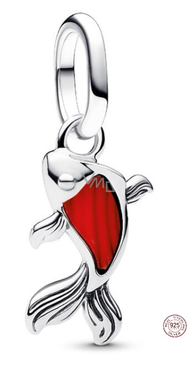 Charm Sterlingové stříbro 925 Mini medailon Rybka Koi s červeným smaltem, přívěsek na náramek zvíře