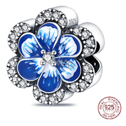 Sterling Silber 925 Blaues Stiefmütterchen + kubischer Zirkon, Perle für Armband natur