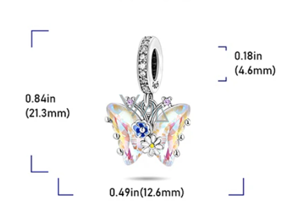 Charm Sterling Silber 925 Schmetterling - Blumen, Tier Armband Anhänger