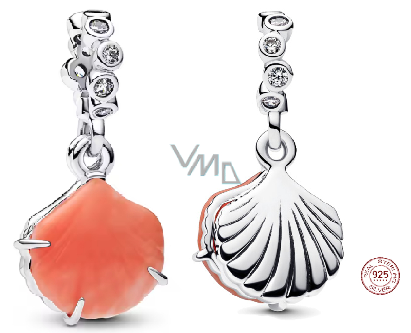 Charm Sterlingové stříbro 925 Mušle 2v1 s korálovou barvou, přívěsek na náramek příroda