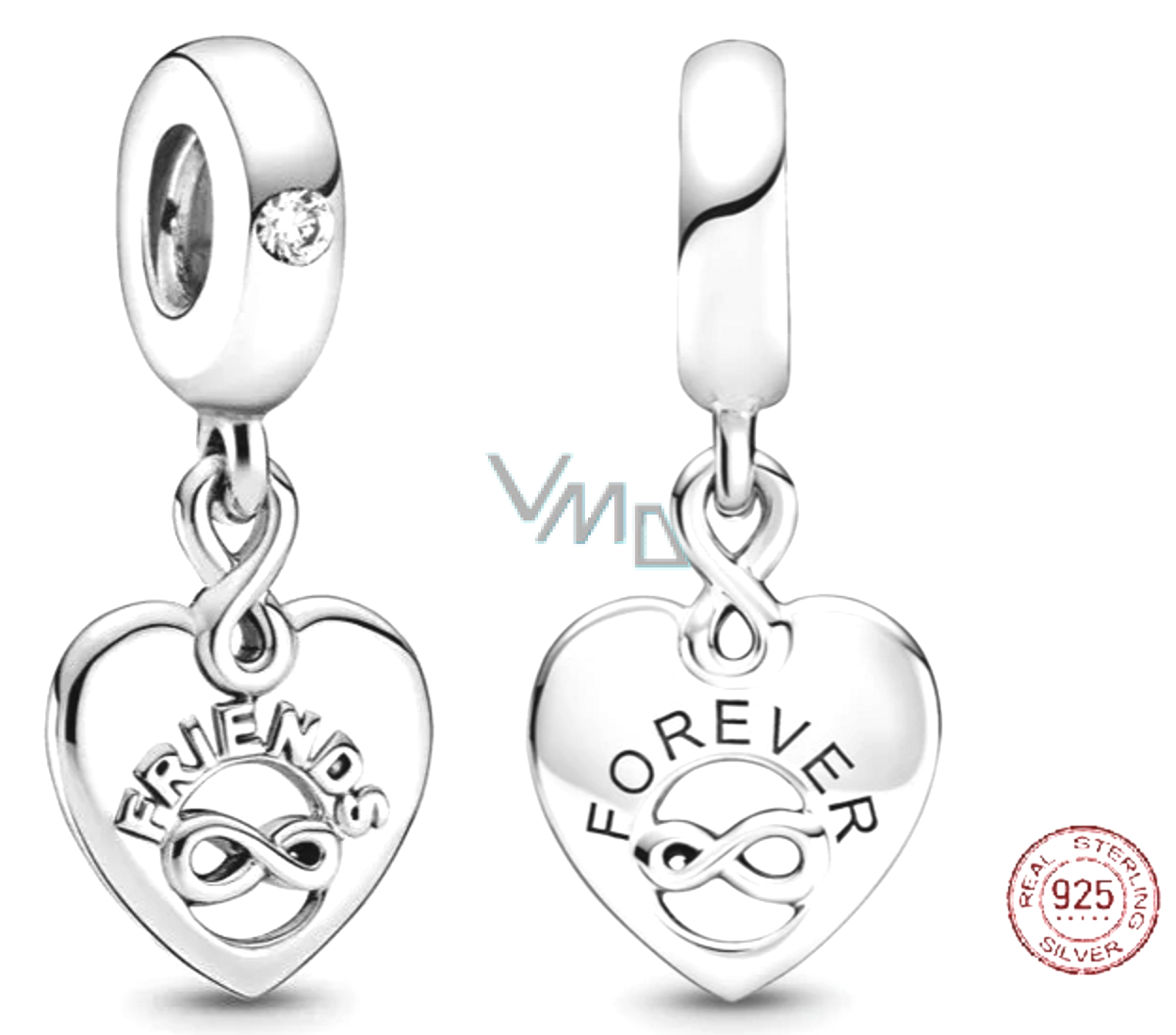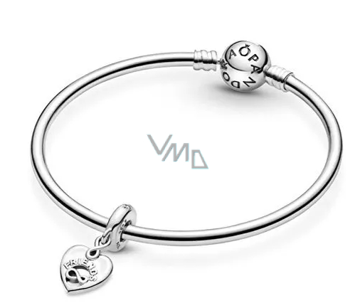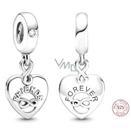 Stylový visací přívěsek vyrobený ze sterlingového stříbra, ve tvaru romantického srdce se symbolem nekonečno, zdoben nápisem Friends Forever a čirým třpytivým kamínkem kubické zirkonie. Dopřejte si romantický doplněk, kterým rozzáříte svůj náramek.