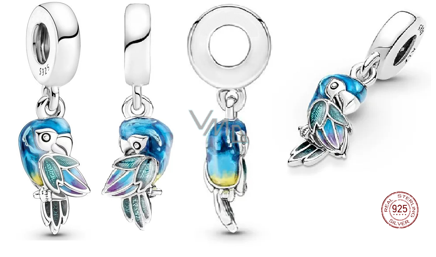 Sterling Silber 925 Dschungel Papagei, Tier-Armband-Anhänger
