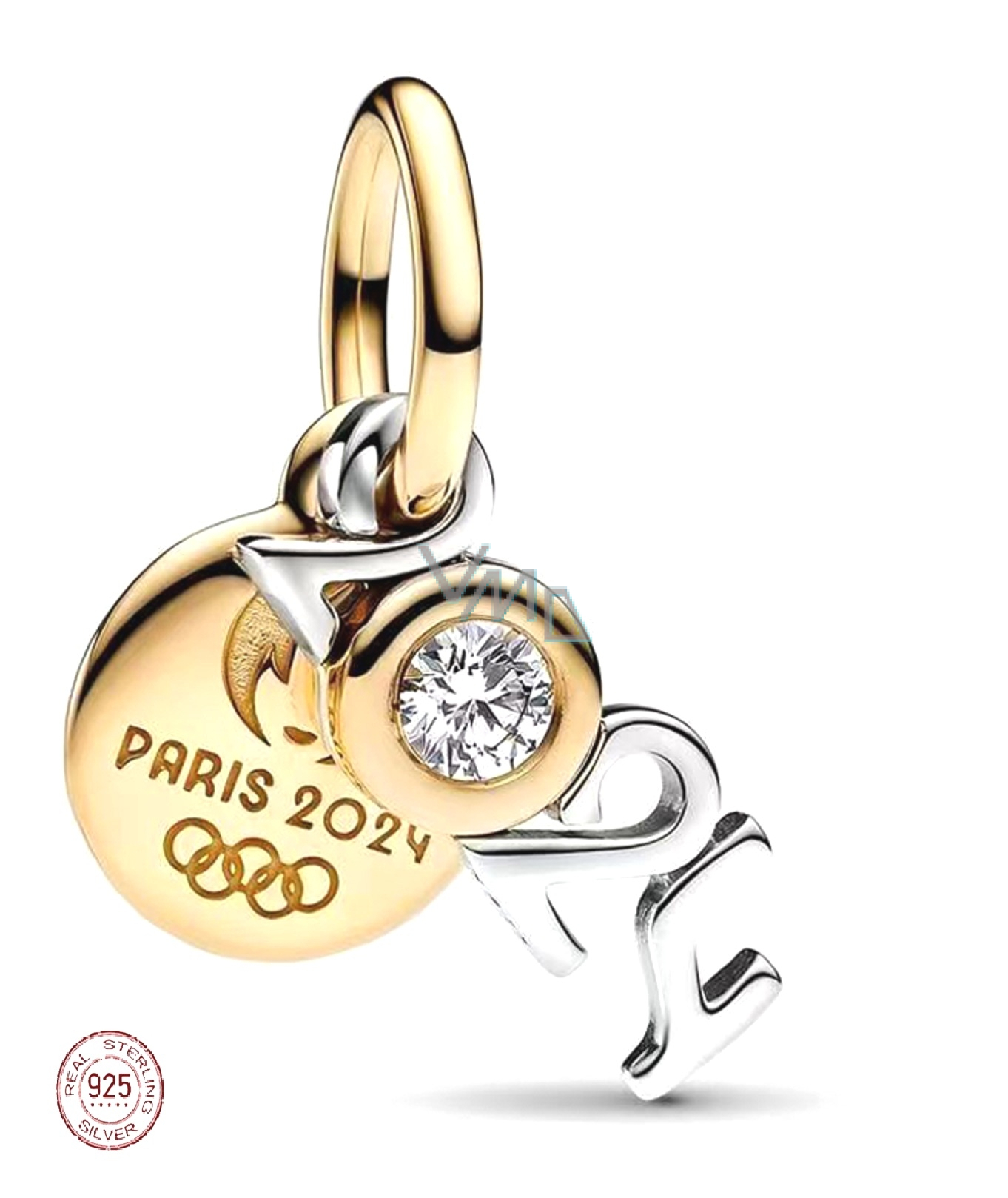 Přívěsek ze sterlingového stříbra 925 s motivem Olympiády 2024 v Paříži má přední kulatý přívěsek ze stříbra 925/1000 tvořící 4 číslice roku „2024“ s vloženým Zirkonem, přední strana „0“ ve tvaru kovu jemně zlaceného, na druhé straně jsou vyryta slova ©PARIS 2024, zadní medailon z jemného pozlaceného kovu, zdobený logem olympijských her PARIS 2024 na jedné straně, druhá strana je leštěná.