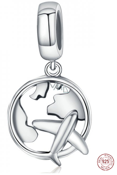 Krásný cestovatelský visací přívěsek z hladkého stříbra obohacený velkým letícím Letadlem. Obdarujte sebe nebo své blízké tímto stříbrným kouzlem. Buďte originální, buďte jedinečná.