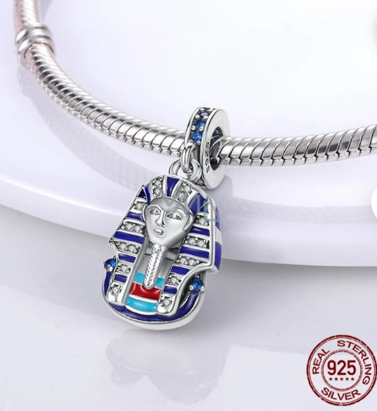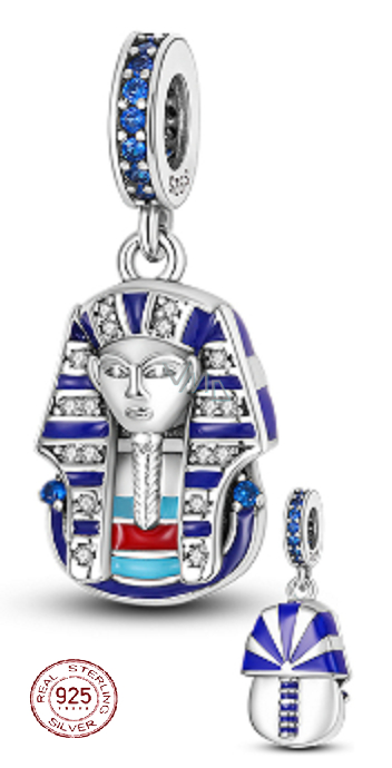Nádherný přívěsek je dokonalou směsí moderního designu a kvalitních materiálů, díky kterým vyniknete v davu. Přemýšlíte, co si přivezete z výletu z Egypta? Kupte si tento stříbrný přívěsek na náramek s motivem Tutanchamona a vzpomeňte si na tento výlet, kdykoliv se podíváte na svůj náramek.