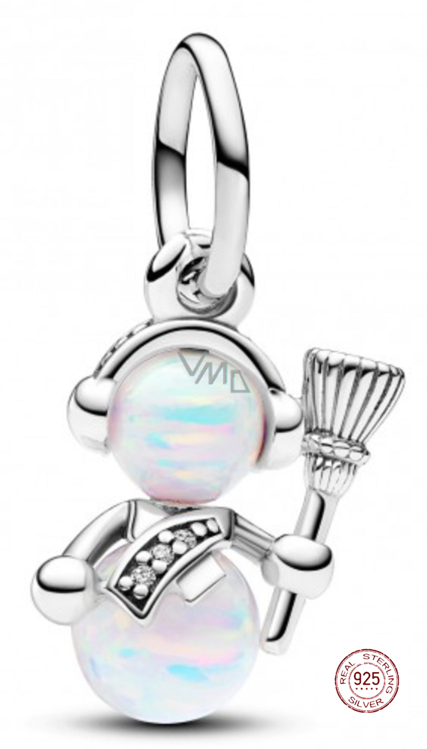 Charme Sterling Silber 925 Opalescent Schneemann, Armband Anhänger Winter