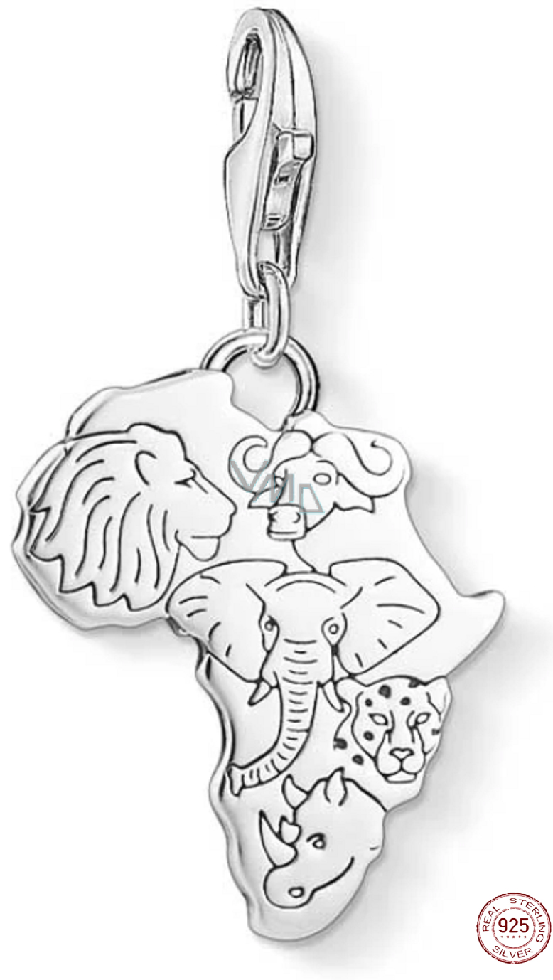 Charms Sterling Silber 925 Afrika, 5 Kontinente in Form von Herrschern des Tierreichs, Karabinerverschluss Anhänger am Reisearmband
