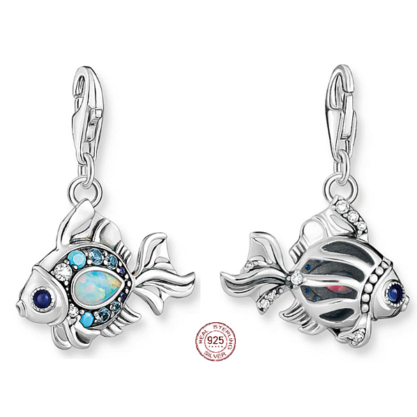 Beschreibung des Produkts Charms Sterling Silber 925 Fisch mit blauen Strasssteinen, Karabinerverschluss Tierarmband Anhänger