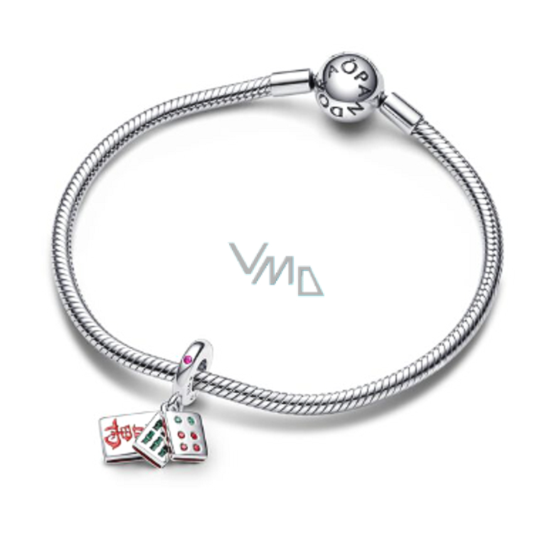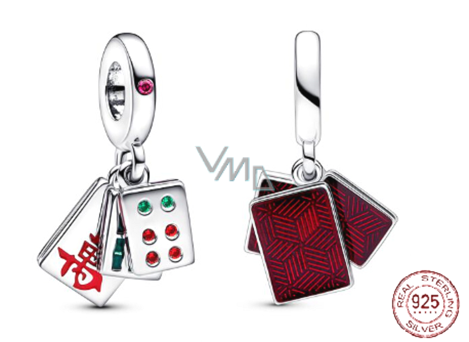 Tento přívěsek ze sterlingového stříbra obsahuje tři dlaždice Mahjong detailně zpracované šesti červenými a zelenými umělými krystaly, šesti potištěnými motivy zeleného smaltu Bambusu a vyrytým červeným smaltovaným čínským znakem za „šest milionů“. Přidejte si ji do své sbírky, abyste měli vítěznou ruku vždy nablízku. Noste symboly své oblíbené hry. V čínské numerologii je šestka považována za šťastné číslo a trojitá šestka představuje požehnání, aby vše dobře dopadlo.