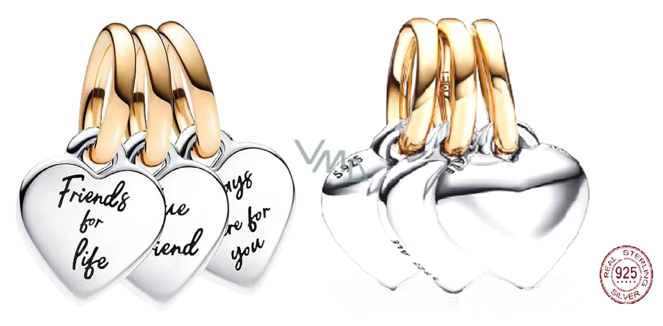 Charm Sterling Silber 925 Dreifacher Freundschafts-Charm mit eingravierter Botschaft 3in1, teilbarer Freundschaftsarmband-Anhänger