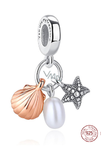 Charm Sterlingsilber 925 Seestern, Muschel, Süßwasserperle, 3-in-1 Anhänger für Armband, Meer