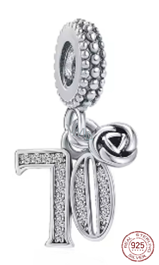 Charme Sterling Silber 925 70 Jahrestag, Rose Anhänger am Armband