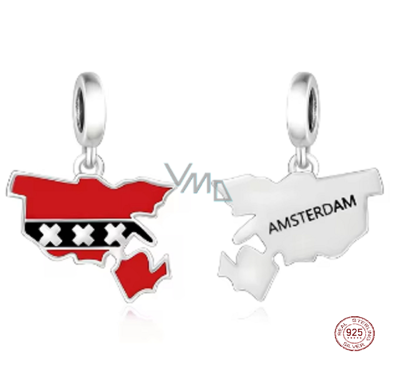 Charm Sterlingové stříbro 925 Nizozemsko Amsterodam vlajka - houpající se mapa přívěsek na náramek cestování