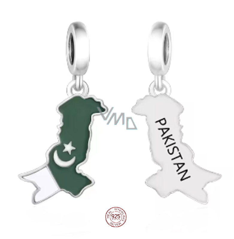 Charm Sterlingové stříbro 925 Pákistán vlajka - houpající se mapa, přívěsek na náramek cestování