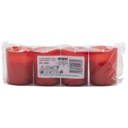 Sada hřbitovních svíček bez krytu Bispol, ideálních jako náhradní náplň do skleněných lamp nebo pro použití v krytých prostorách. Praktické balení obsahuje 4 kusy červených svíček.