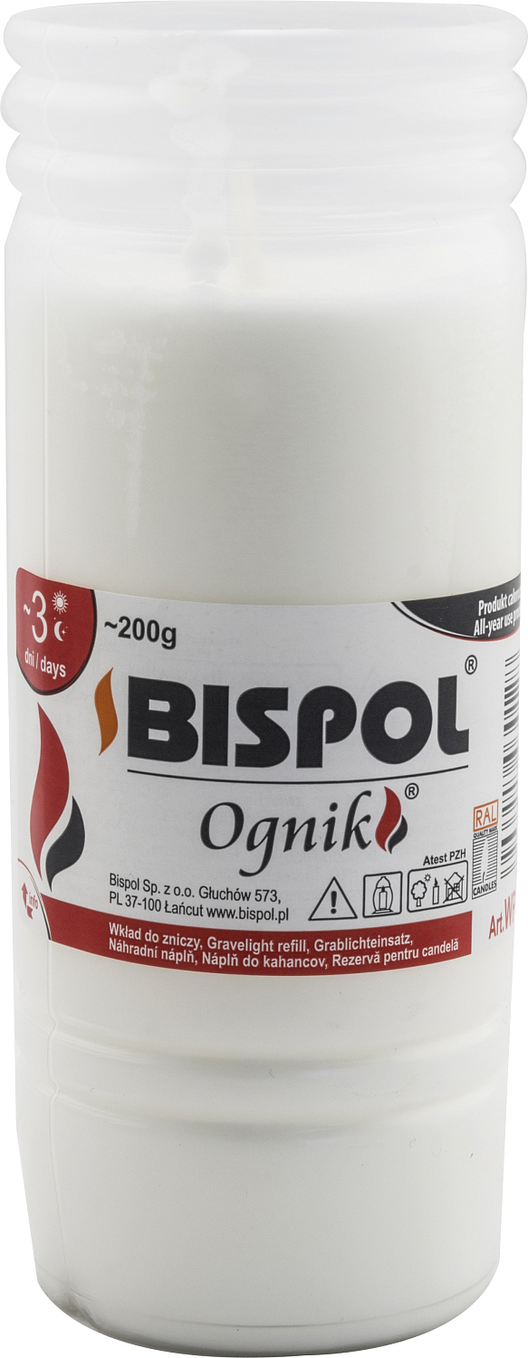 Bispol OGNIK Ölkerze WP3. Geeignet insbesondere als Nachfüllung für Grabkerzen. Sehr hochwertige gegossene Kerze, die zu 100 % abbrennt.