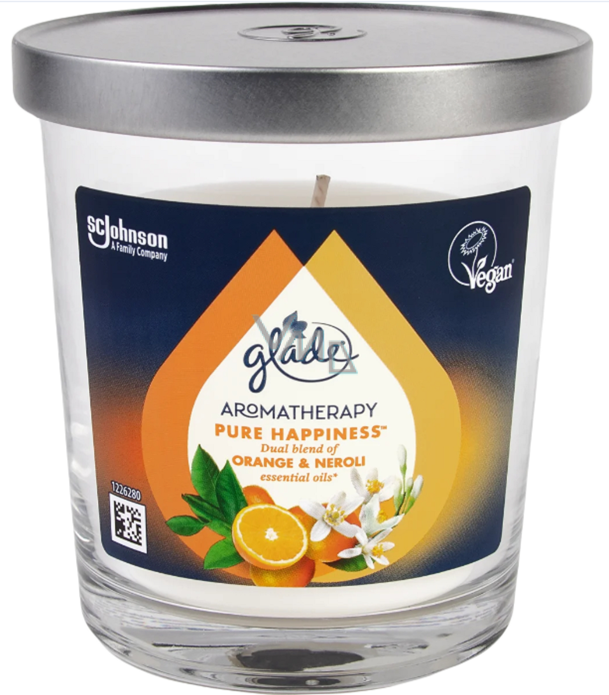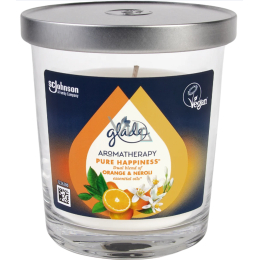 Glade Aromatherapy Pure Happiness s vůní pomeranče a květů neroli vonná svíčka ve skle 170 g