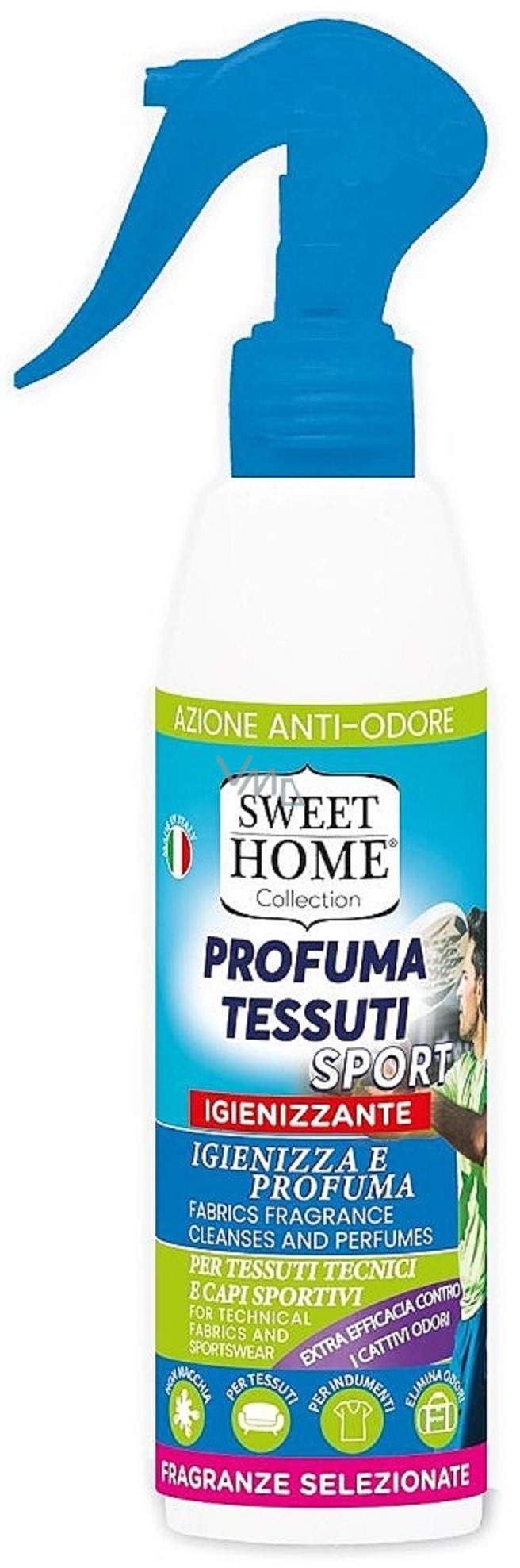 Osvěžovač textilií Sweet Home Sport na funkční a sportovní prádlo je extra účinný proti nepříjemným pachům. Osvěžit tímto parfémem i bytové textilie, batohy, kufry, sportovní tašky koberce, můžete použít i na osvěžení tkanin a koberců ve vozidle.