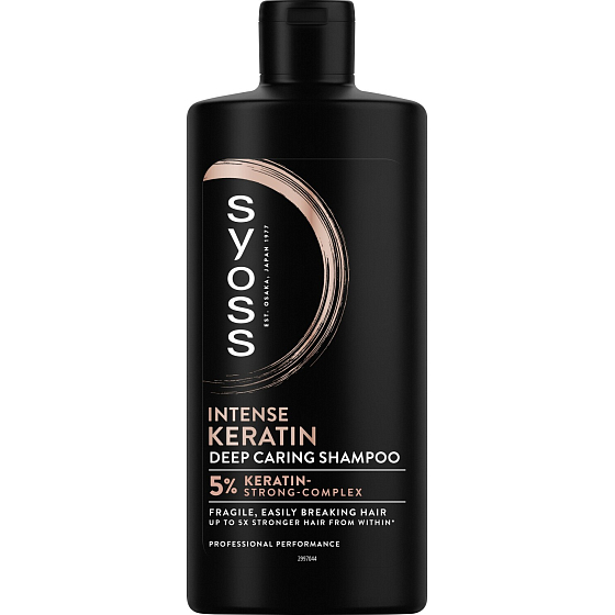 Syoss Shampoo Keratin mit einer von Japan inspirierten Formel - mit Extrakten aus der blauen Lotusblume für leicht brüchiges Haar.