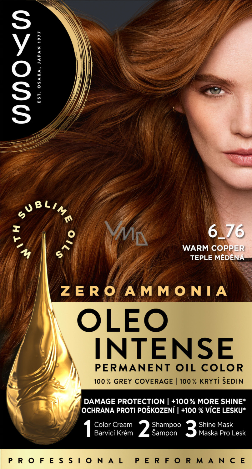 Die Syoss Oleo Intense Haarfarbe mit ölbasiertem Rezept ohne Ammoniak ermöglicht eine langanhaltende, schonende Färbung und professionelle Grauhaarabdeckung. Die Formel mit pflegenden Ölen unterstützt das Eindringen der Farbpigmente tief in das Haar für eine hohe Farbintensität und Langlebigkeit. Der Inhalt enthält einen pflegenden Balsam mit Fair-Trade-Arganöl, der das Haar weich, geschmeidig und glänzend hinterlässt. Intensiv pflegt das Haar nach dem Färben für starkes und gesund aussehendes Haar.
