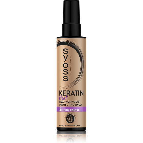 Syoss Keratin Heat s tekutými složkami keratinu identickými pro vlas, vyvinutý s a testovaný kadeřníky pro vlasy jako ze salonu každý den.