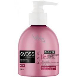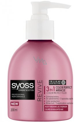 Syoss Supreme Revive. Řada Syoss Revive pro barvené vlasy intenzivně pečuje o obarvené či melírované vlasy a její profesionální receptura nabízí dlouhotrvající ochranu barvy. Syoss Supreme kúra pro pro ochranu barvy v sobě spojuje hloubkově účinnou péči a fixaci barvy. Díky třem možným způsobům aplikace je skutečným specialistou na barvené a melírované vlasy.