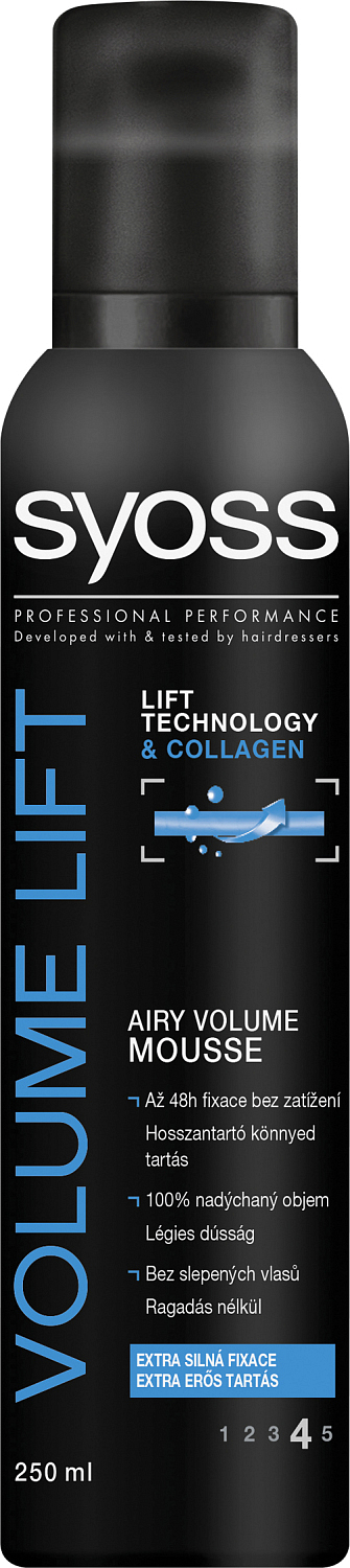 Instantan großer Volumen. SYOSS Volume Lift mit Lift Technologie und Kollagen für 100 % voluminöses, langanhaltendes Volumen und Halt bereits ab den Wurzeln, die das Haar nicht beschweren. 48 h Kontrolle des Stylings für voluminöses Haar mit extra starkem Halt. 100 % voluminöses Haar. Effekt gegen Haarausfall, für Volumen und gestärktes Haar direkt von den Wurzeln. Klebt nicht, hinterlässt keine Rückstände und lässt sich leicht auskämmen. Antistatische Rezeptur.