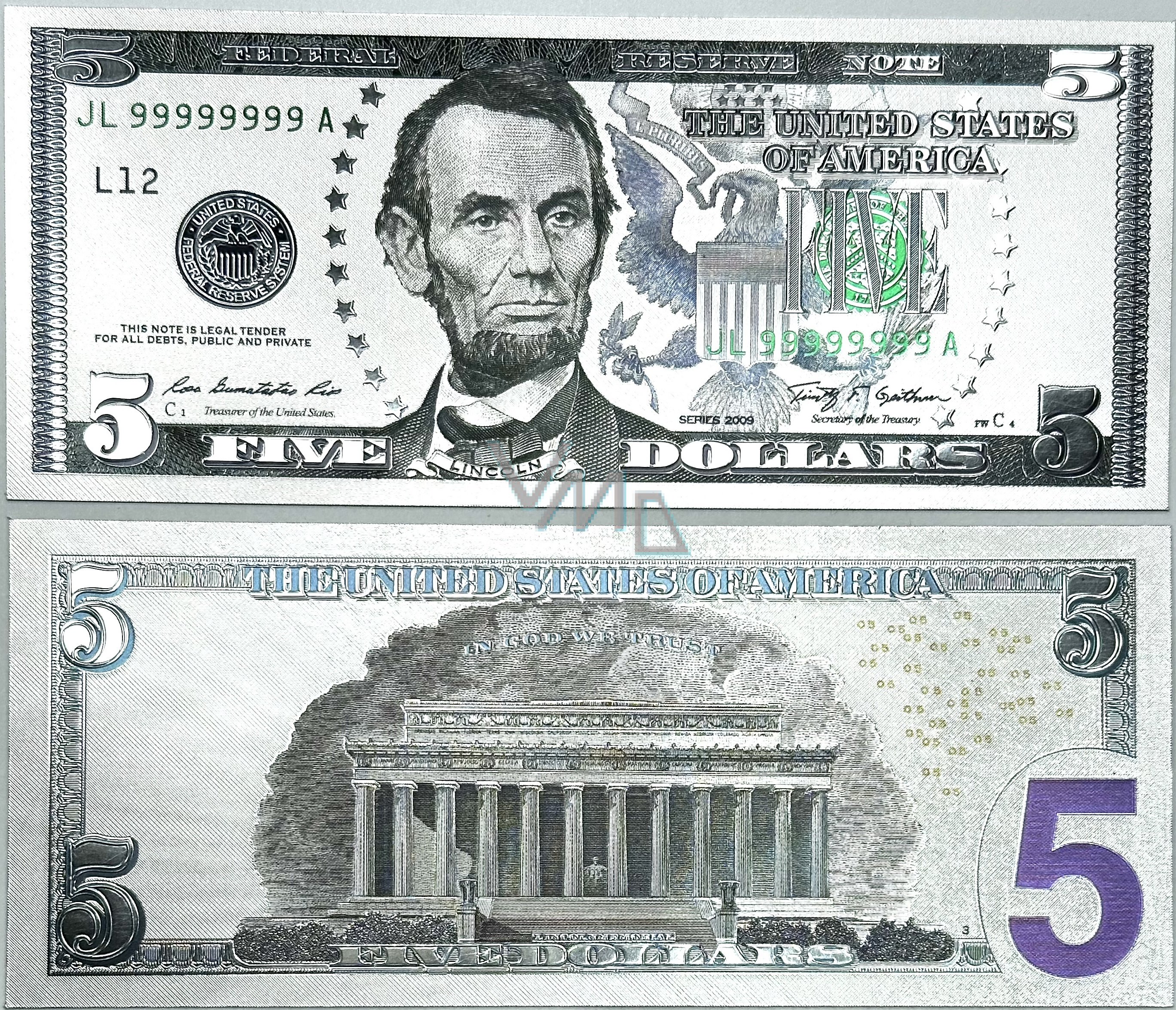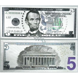 Postříbřená 5-dolarovka pro cestovatele a lidi, co chtějí přilákat více peněz do své peněženky, bytu, kanceláře.