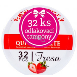 Jednorázové vatové tamponky napuštěné odlakovačem v jahodové parfemaci. Šetrně a rychle odstraňují lak na nehty. Jsou bez nepříjemného zápachu. V praktickém balení ideálním na cesty.