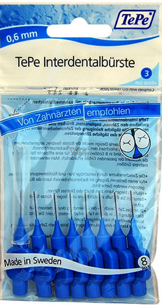 TePe mají speciálně navržená jemná vlákna zajišťující efektivní čištění a dlouhou životnost. Jsou vhodné pro osoby s citlivými dásněmi, citlivými zuby, gingivitidou, parodontidou nebo s implantáty. Každý kartáček disponuje drátkem o průměru 0,6 mm potažený umělou hmotou, aby byla zajištěna maximální ochrana dásní. Mezizubní kartáček je důležitou součástí ústní hygieny, protože zubní kartáček vám dobře nevyčistí špatně dostupné nečistoty mezi zuby. Speciálně vybraná vlákna a jedinečné držátko vám zajistí efektivní čištění a dlouhou trvanlivost kartáčku. Tyto jemné, kvalitní mezizubní kartáčky se jen tak nezlomí!