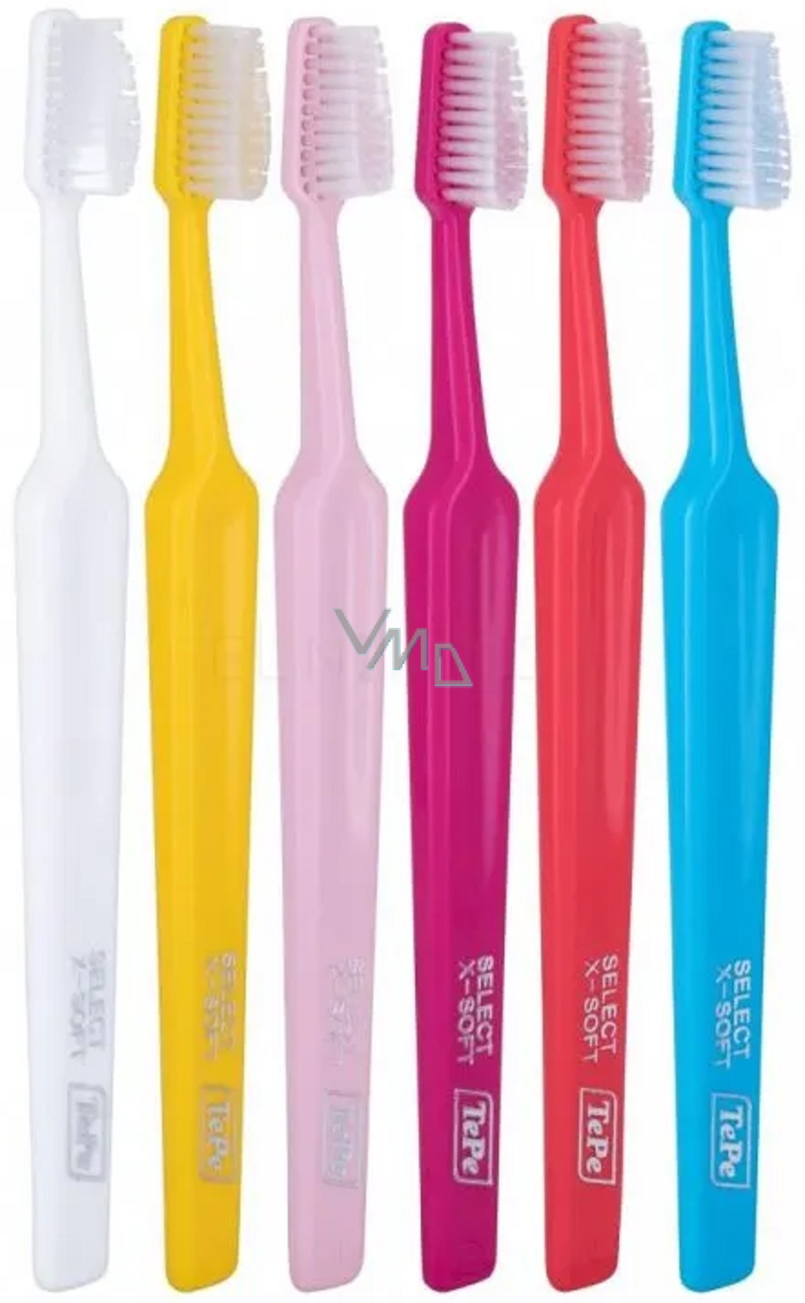 TePe Select X-Soft s malou, zužující se hlavičkou je vhodný pro ty, kteří mají při čištění zubů problémy s dávicím reflexem. Unikátní vlastnosti tohoto zubního kartáčku umožňují bezproblémové odstranění plaku i z těžko přístupných oblastí. Kartáček o tvrdosti X-Soft má velmi jemná vlákna a vhodný i pro osoby s citlivými zuby nebo dásněmi.