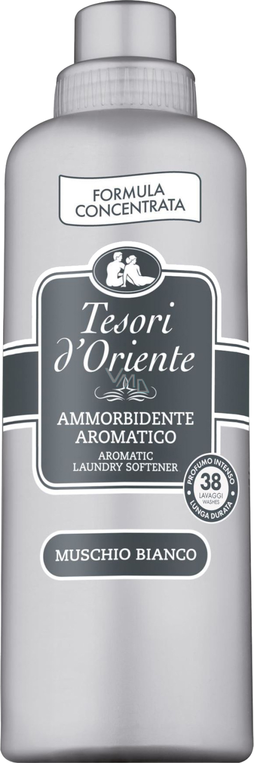 Tesori d'Oriente ist konzentrierter Weichspüler mit betörendem Duft. Tesori umschmeichelt Ihre Wäsche und Kleidung mit einer sinnlichen Umarmung und hinterlässt sie schön parfümiert und weich. Der Weichspüler Tesori Muschio Bianco besteht aus einem starken verführerischen orientalischen Duft von Moschus, Amber und weißen Blumen. Er ist angereichert mit seltenen Mikrokapseln des Parfums, die mit jeder Bewegung allmählich ihren intensiven Duft freisetzen.