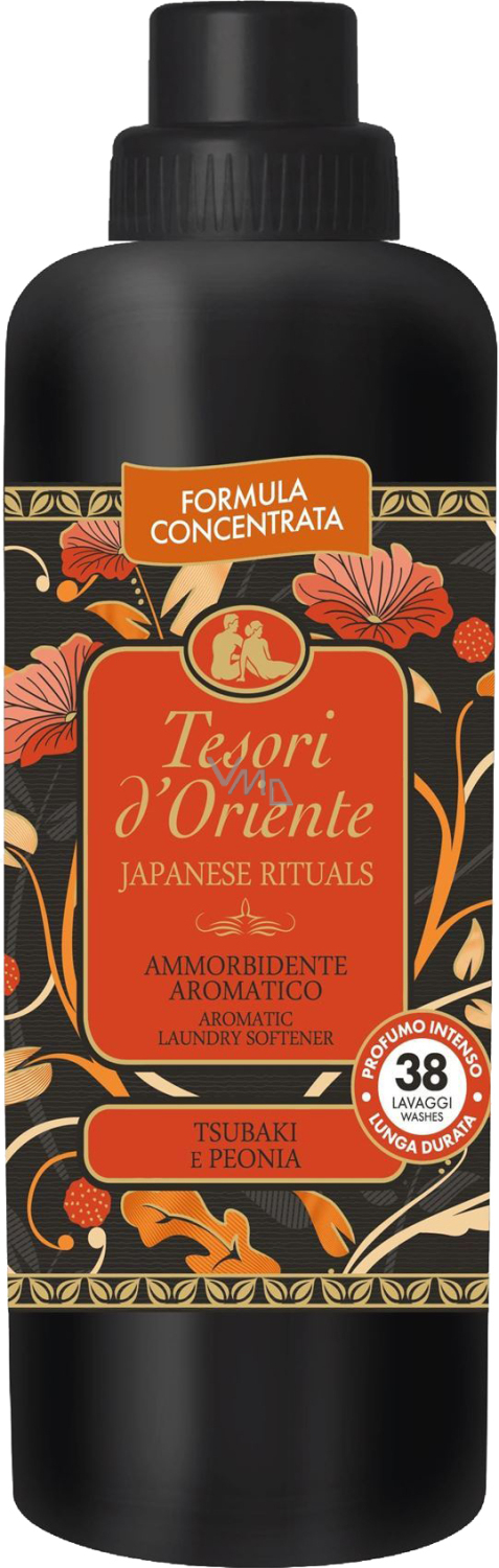 Tesori d'Oriente ist ein konzentrierter Weichspüler mit betörendem Duft. Tesori hüllt Ihre Wäsche und Kleidungsstücke in eine sinnliche Umarmung und hinterlässt sie schön parfümiert und weich. Weichspüler Tesori Japanese Rituals Tsubaki e Peonia besteht aus zarten Noten von Pfingstrose, japanischer Kamelie und Bergamotte. Er ist angereichert mit kostbaren Duftmikrokapseln, die sich mit jeder Bewegung allmählich entfalten.