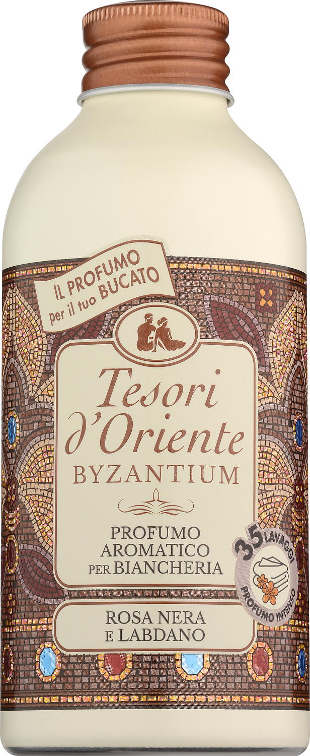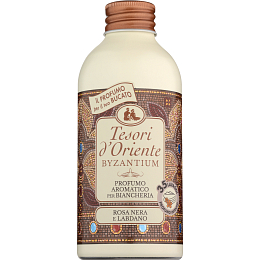 Konzentrierter Duft für Wäsche Tesori d´Oriente Byzantium verleiht der Wäsche einen einzigartigen intensiven langanhaltenden Duft. Die Essenz der schwarzen Rose in Harmonie mit den warmen Tönen von Labdanum verzaubert Ihre Sinne und vermittelt ein angenehmes Gefühl der Entspannung. Der Duft dringt tief in die Fasern ein und die Wäsche bleibt so über einen langen Zeitraum frisch und duftend. Der Duft für Wäsche enthält keinen Weichmacher, daher ist er ideal für alle Arten von Stoffen, auch für Synthetik und Mikrofasern.