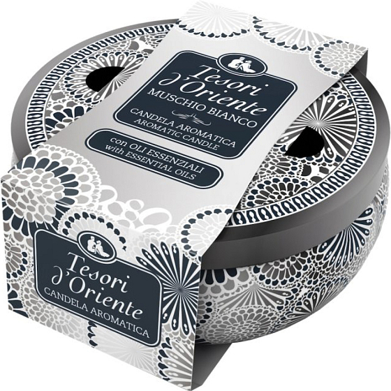Aromatische Duftkerze TESORI ist aus hochwertigen Wachsen und ätherischen Ölen hergestellt und verbreitet einen intensiven Duft.