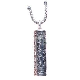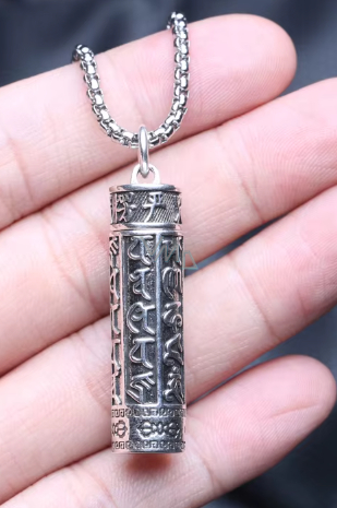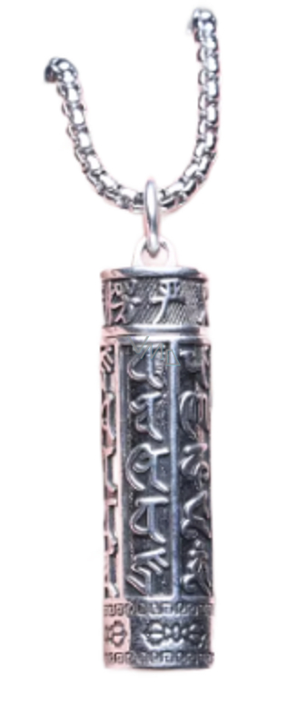 Tento jedinečný přívěsek ve tvaru tibetského mantrového válce je nejen krásným šperkem, ale také silným duchovním amuletem. Na povrchu jsou vyryté posvátné znaky Mantry „Óm Mani Padme Húm“, která je v buddhismu považována za symbol soucitu, ochrany a duchovní očisty.